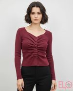 Jersey elastico con detalles de fruncido en el pecho y los lados.