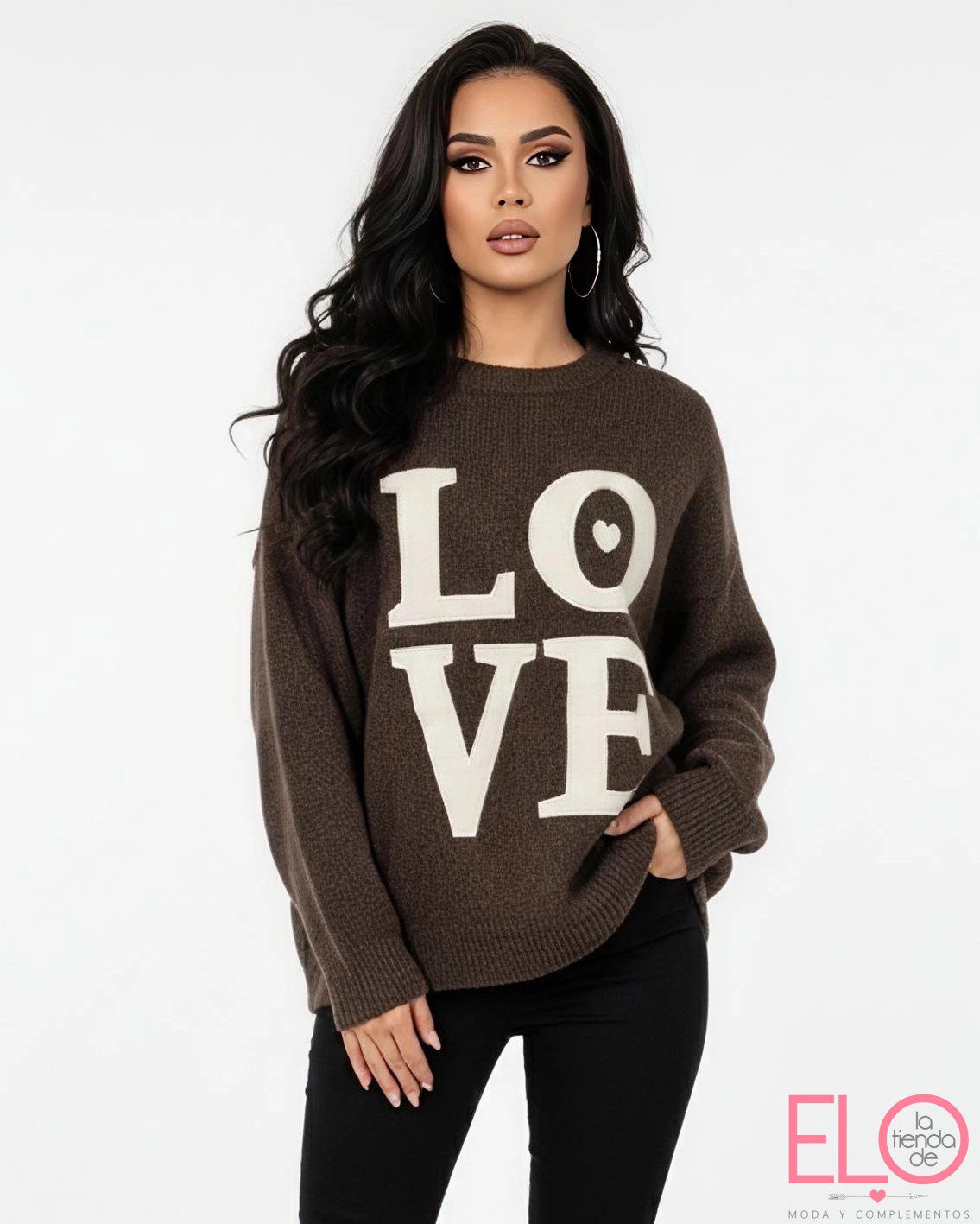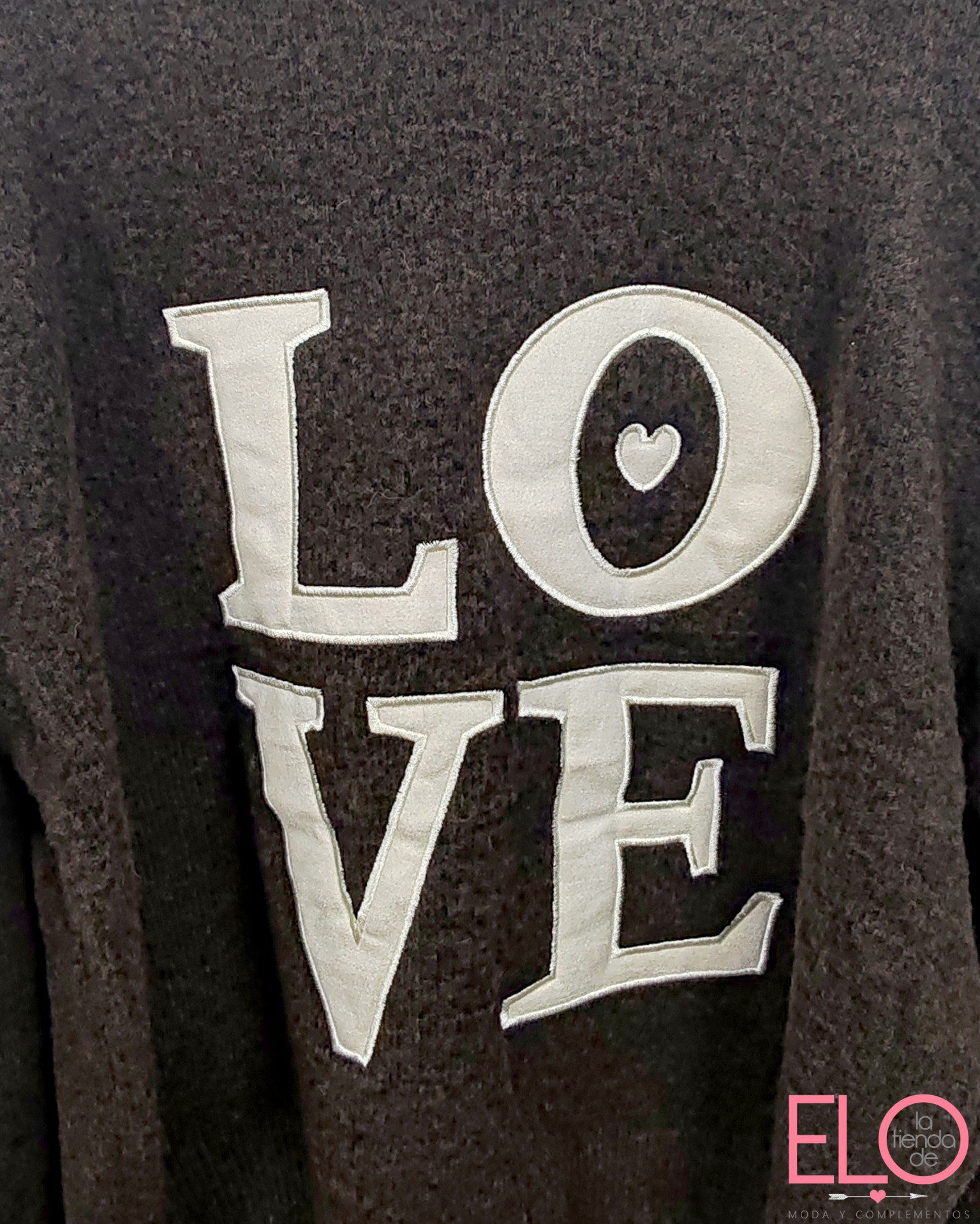 Con la palabra LOVE grande en el frente.