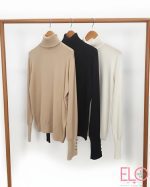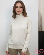 Jersey básico de cuello vuelto y tacto muy agradable, tiene detalle de botones en color plata en la mangas.