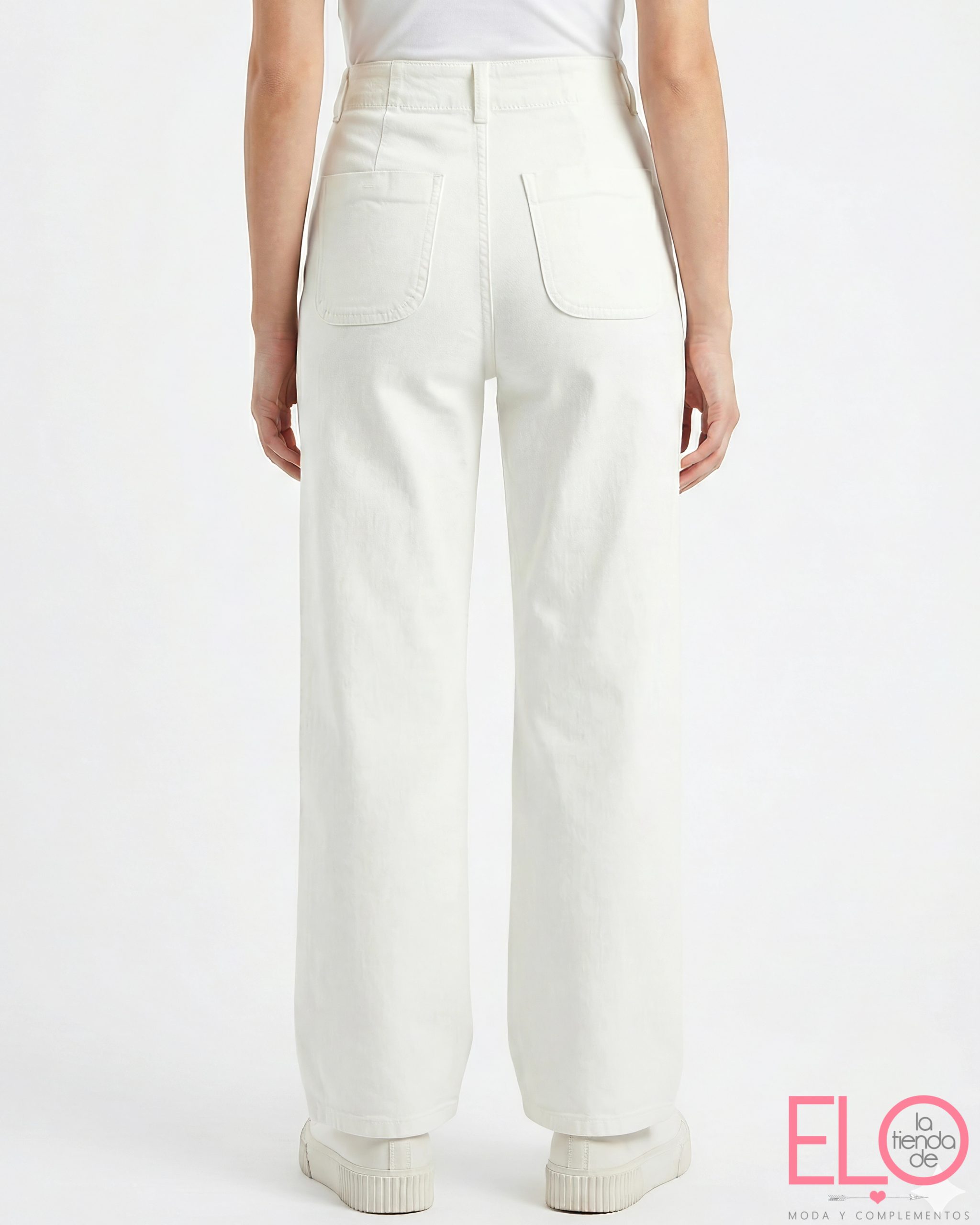 Lleva bolsillos traseros.