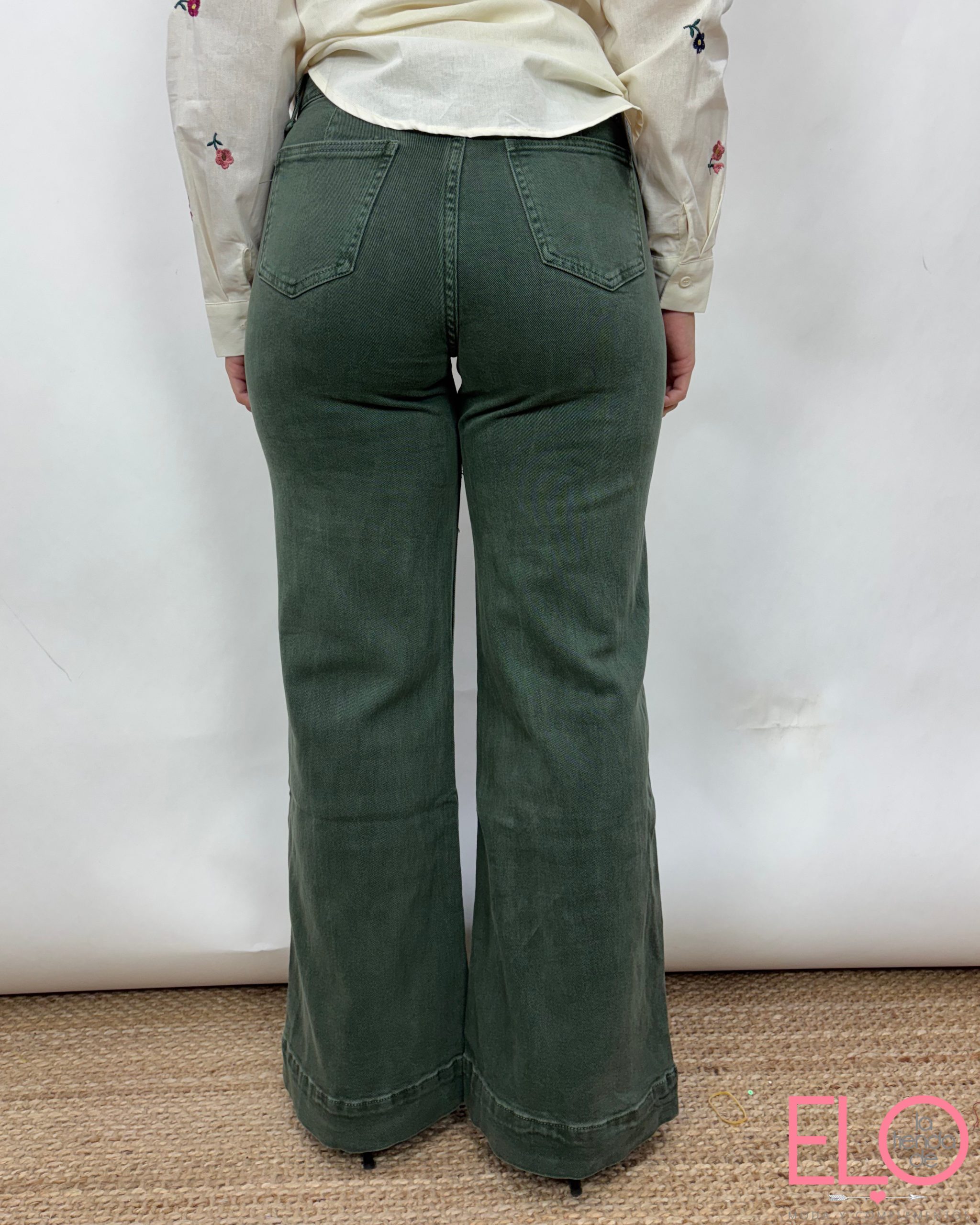 Pantalón denim de color verde.