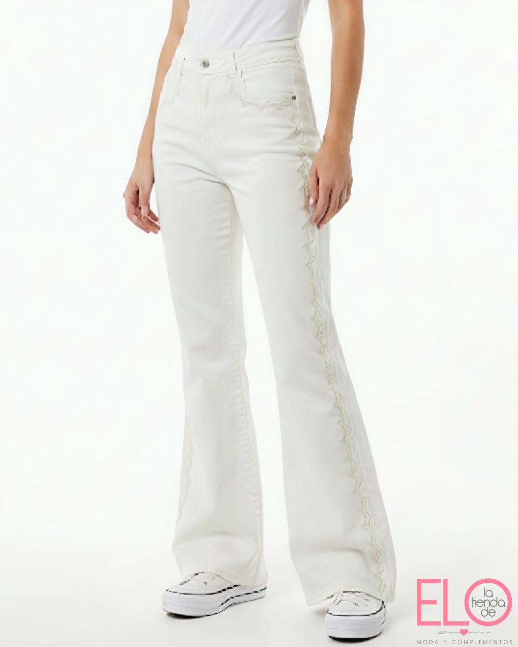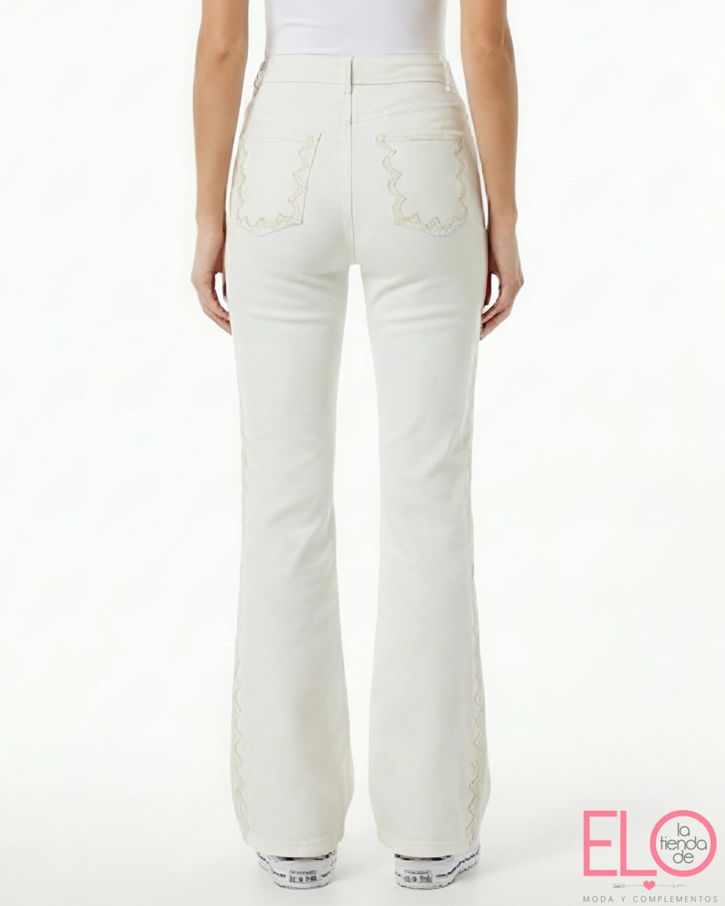 Pantalón denim de color blanco roto.