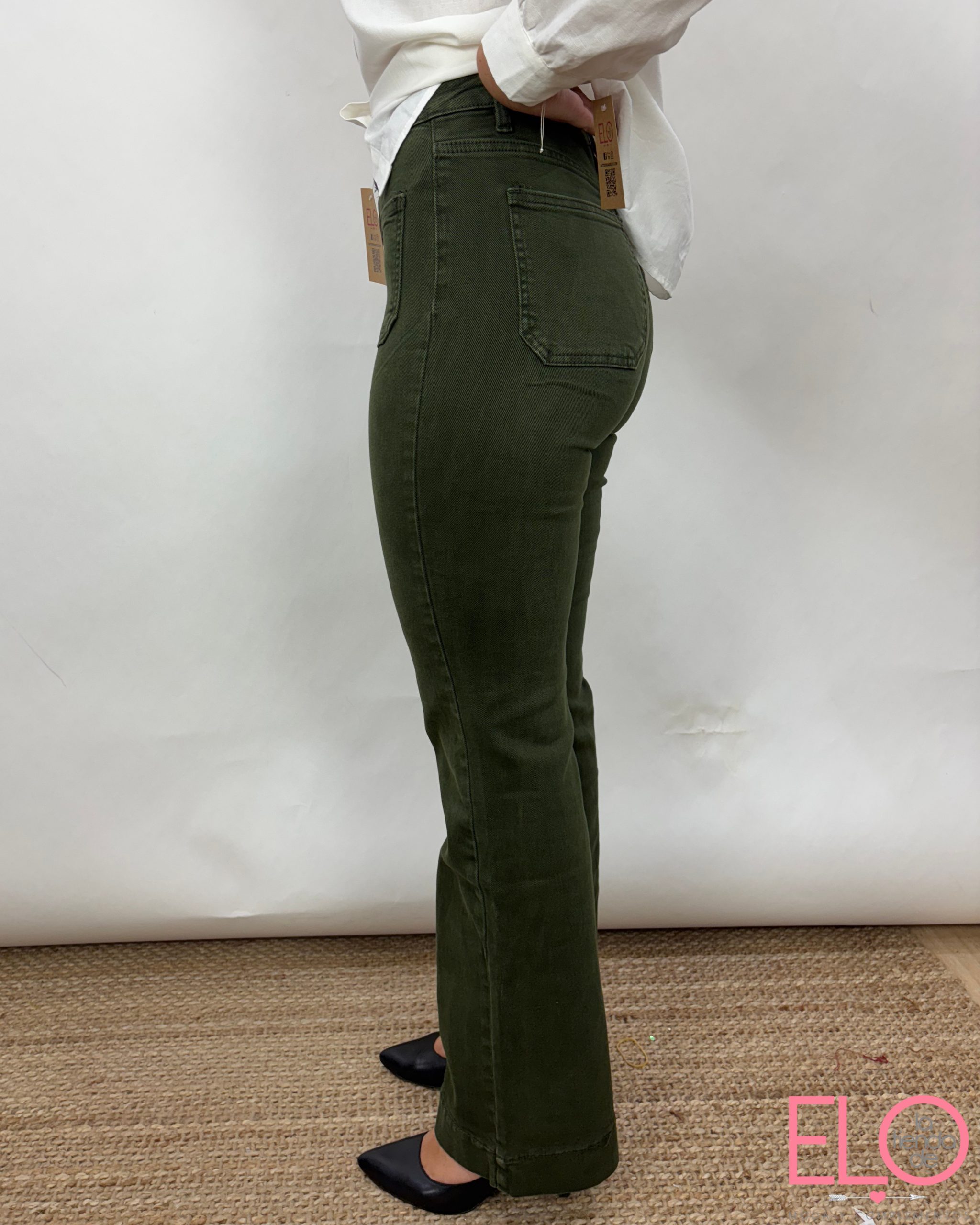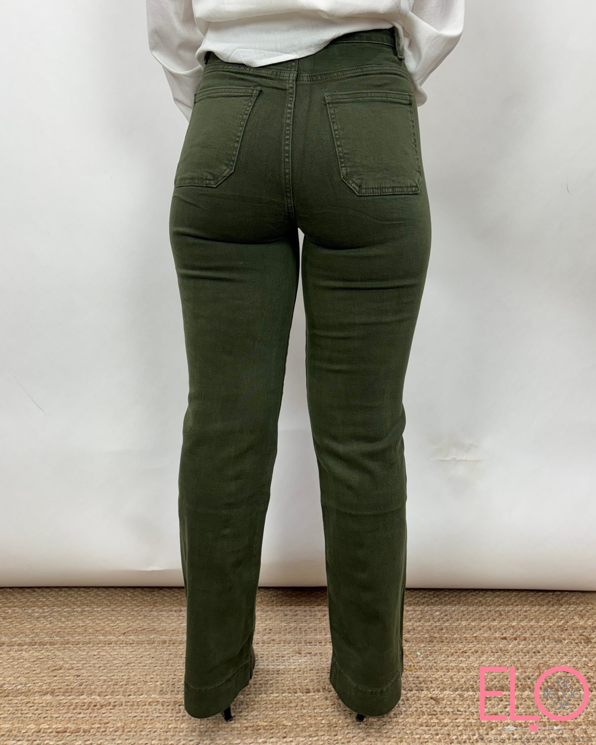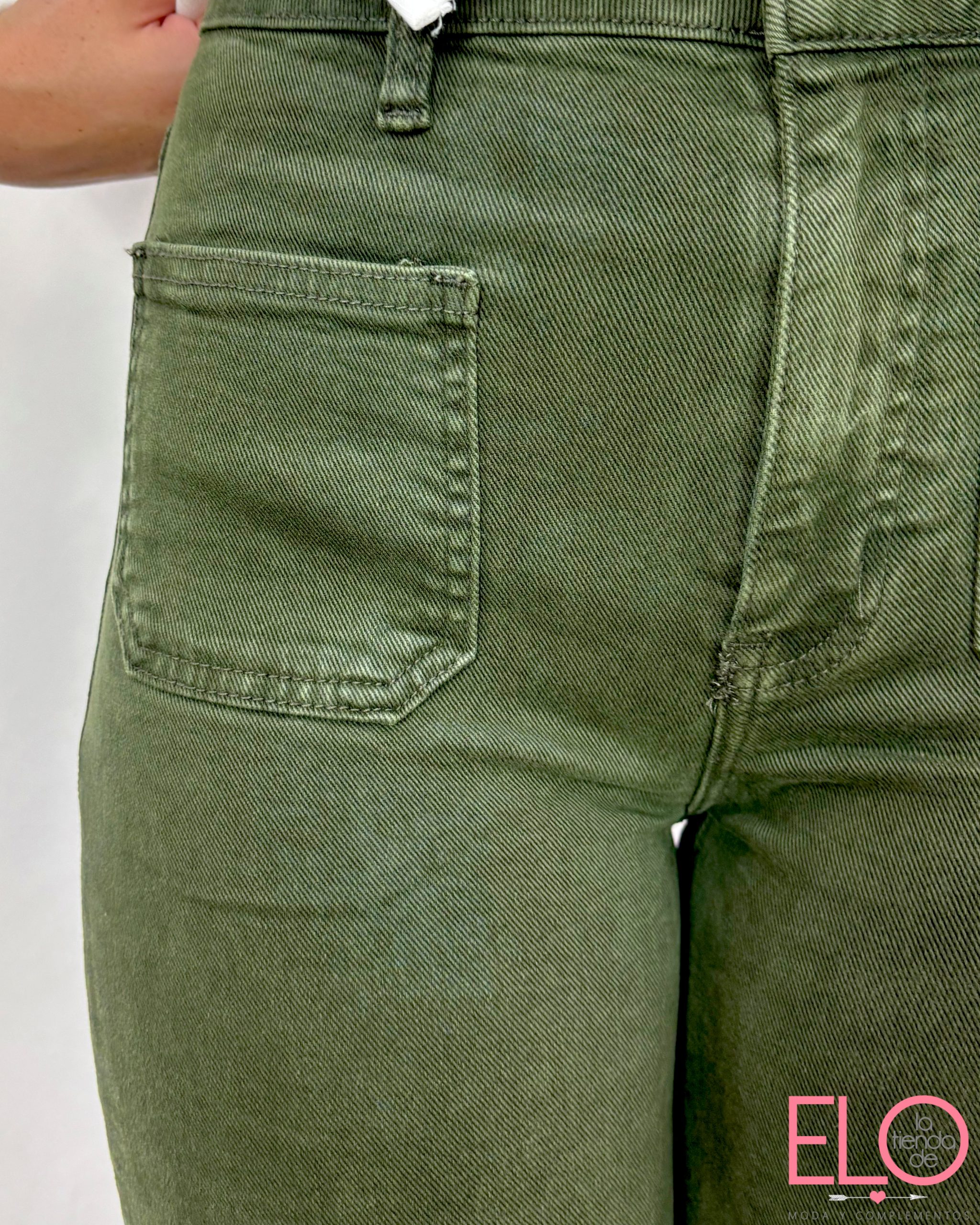 Pantalón denim de color verde.