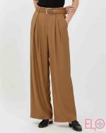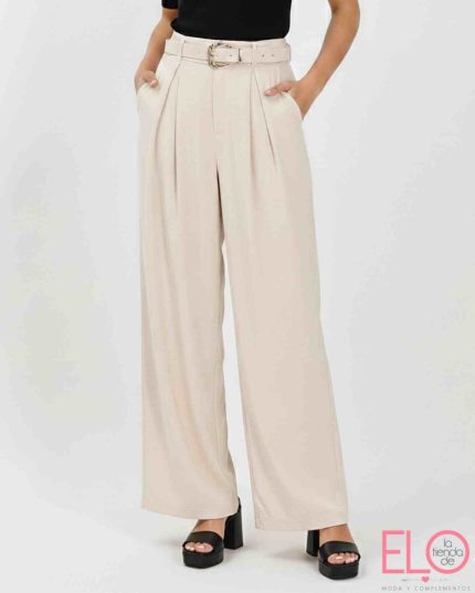 Pantalón de pata ancha fluido, con cinturón incorporado.