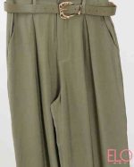 Pantalón de pata ancha fluido, con cinturón incorporado.