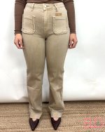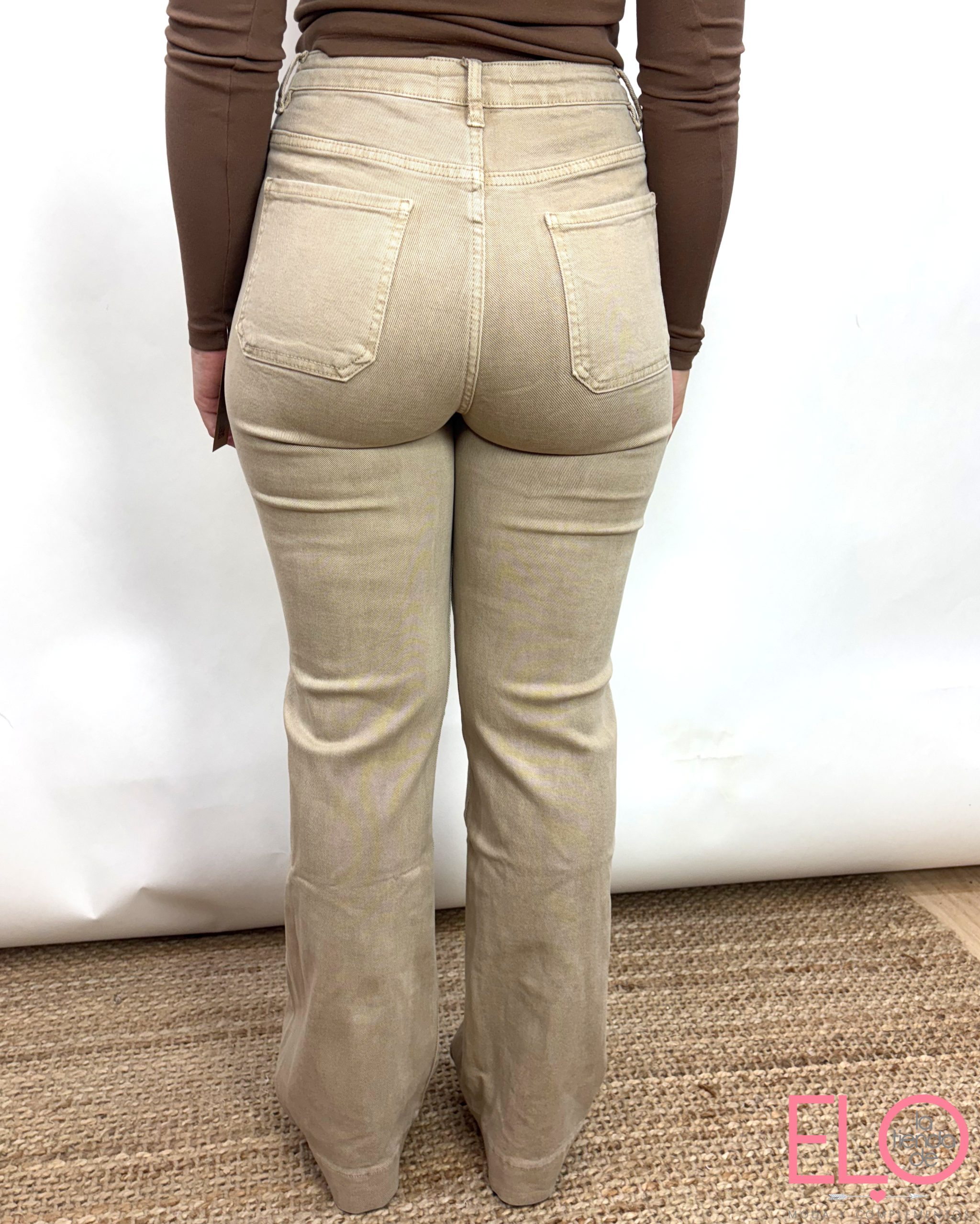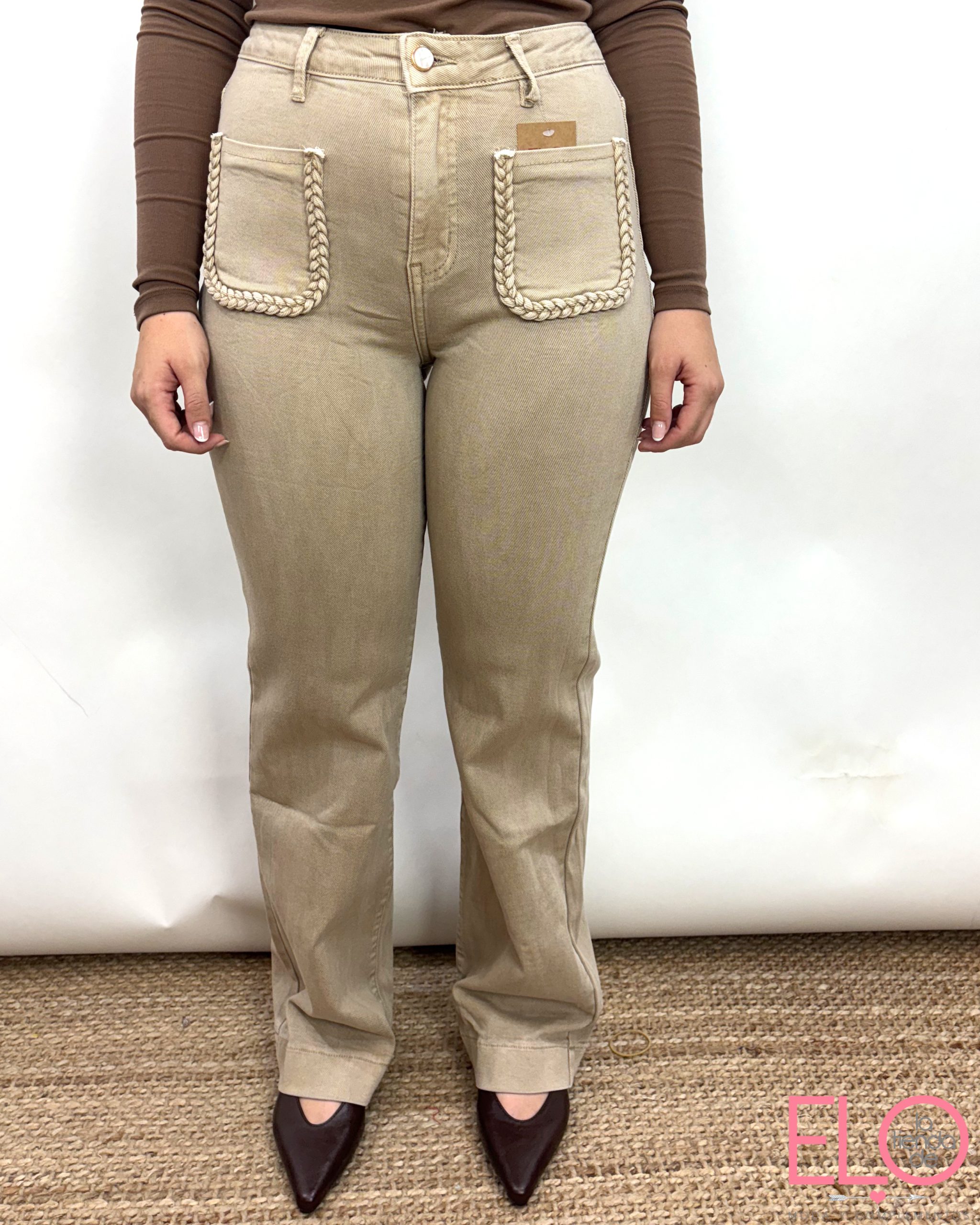 Pantalón denim de color camel.