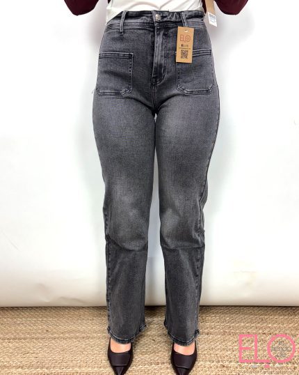 Con cuatro bolsillos.