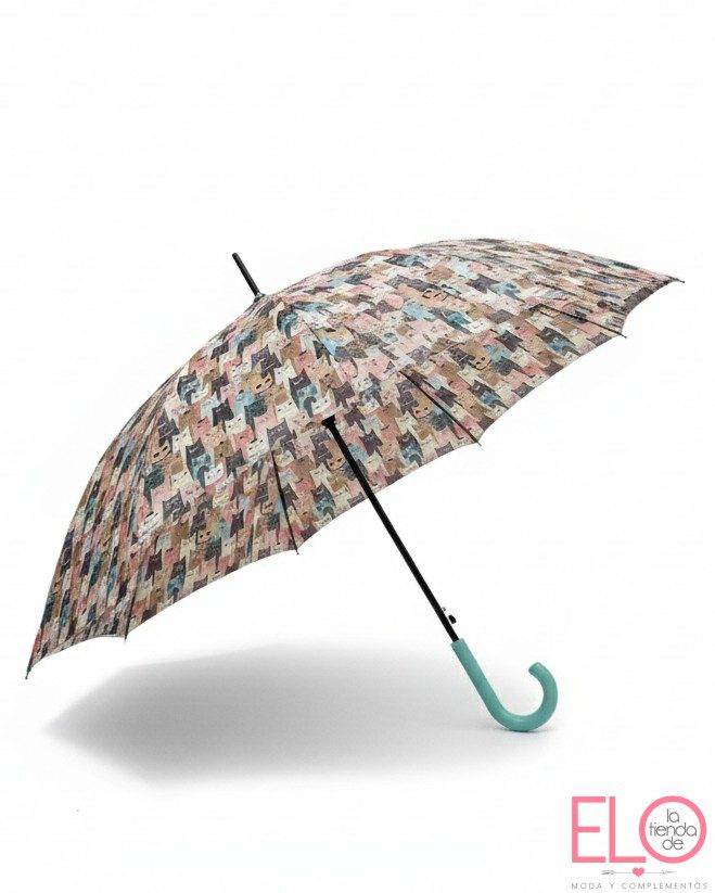 Paraguas con estampado de gatos.