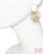 Pendiente de metal estilo retro. acabado satinado. con top de resina y colgante en forma de círculo efecto espiral con trabajo de textura y relieve en color dorado Composición: resina. metal.