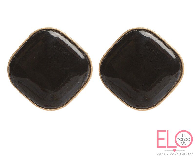 Pendiente en rombo de resina con borde en metal dorado satinado, en color negro. Medidas: 4 cm. Composición: resina, metal.