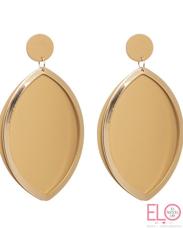 Pendiente post de con colgante articulado en forma de hoja con pieza calada superpuesta en metal acabado mate coating. en dos colores: beige. verde. Composición: metal.