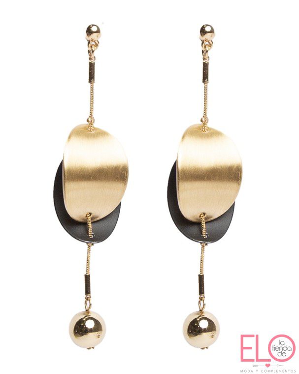 Pendiente longilíneo con top de bolita de metal. cadena tipo cordón pieza de metal acabado mate coating y terminación en bola de metal. en dos colores: negro. blanco. Composición: acrílico. metal.