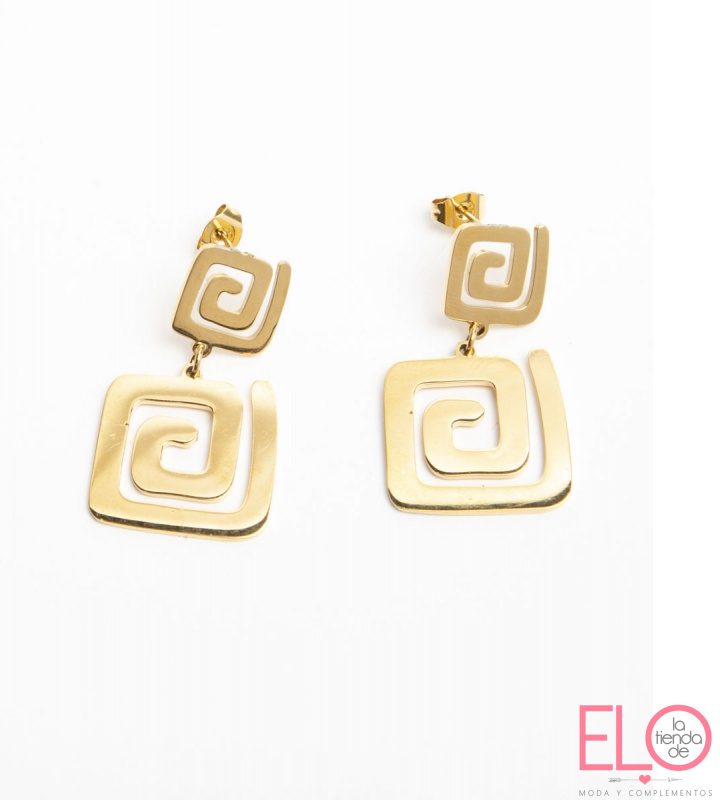 Pendiente en dos piezas en metal calado de forma geométrica. de acero inoxidable con baño de oro de 14 kilates.