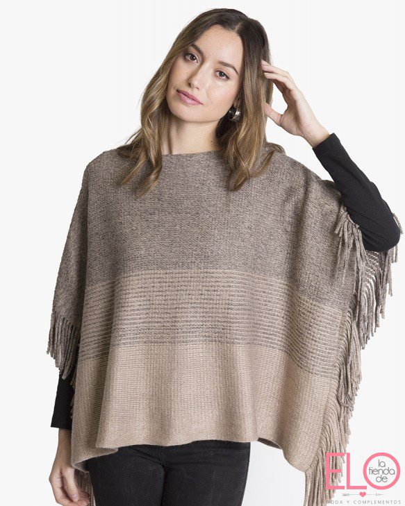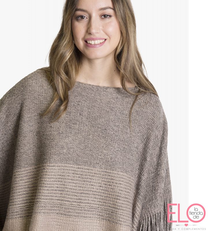 Suave ponchito tejido con flecos en los lados. efecto vigoré.