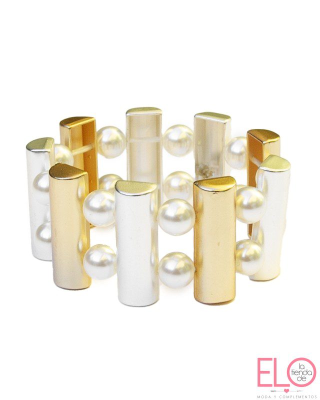 Brazalete elástico con eslabones de metal y perlas. en un color: dorado plateado. una pieza. Composición: plástico. metal.