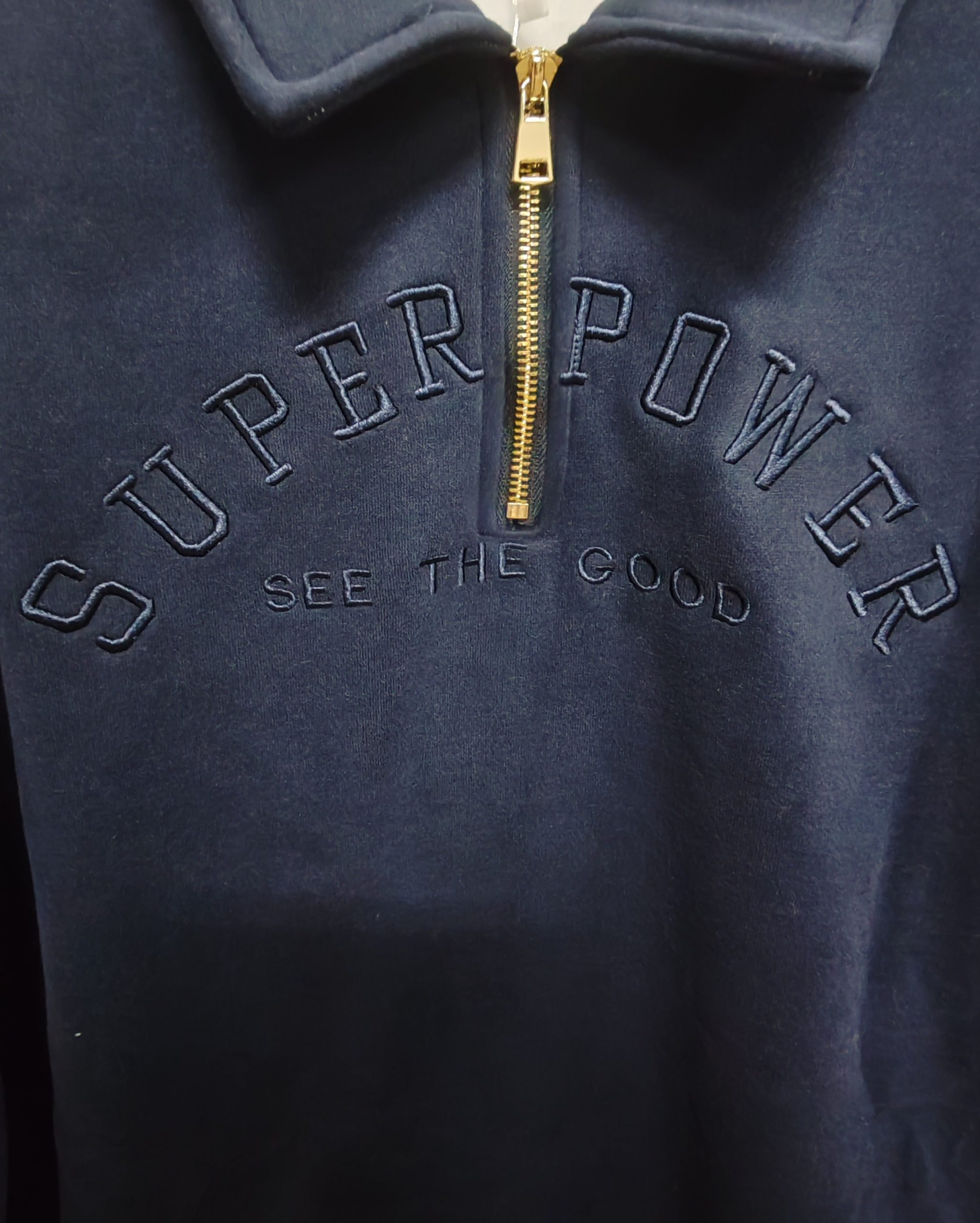 Lleva bordado en el pecho con la palabra «SÚPER POWER»