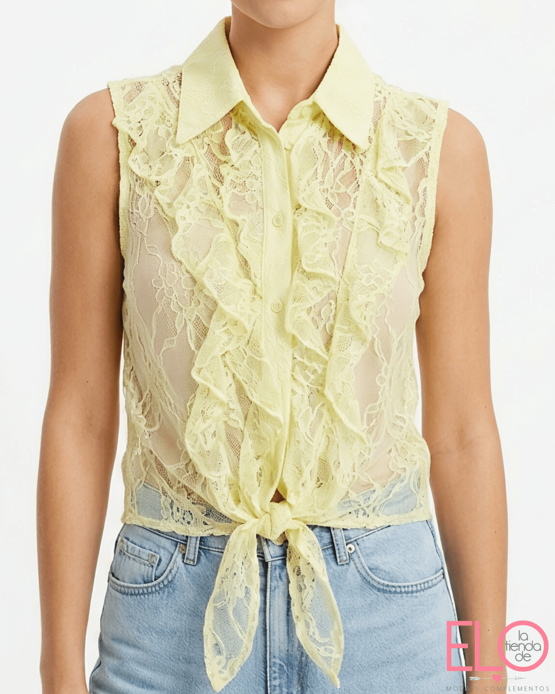 Top de encaje de color amarillo.