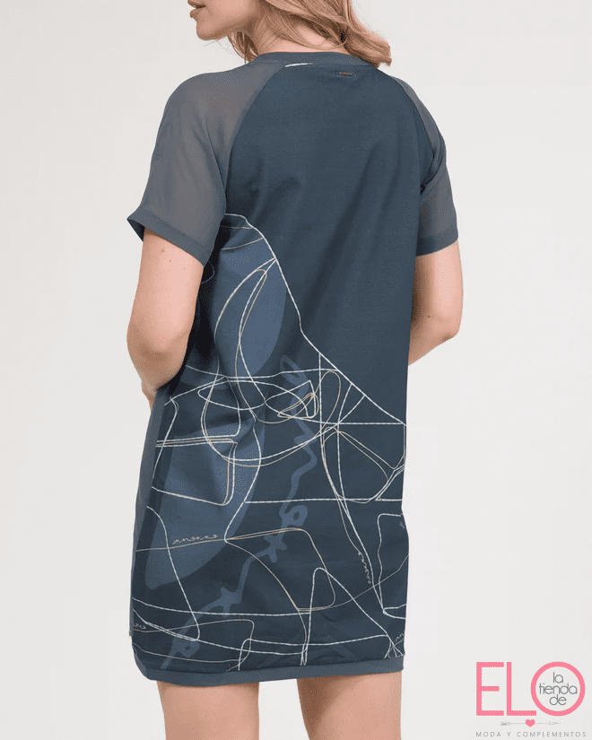 Este vestido de manga corta combina un diseño frontal limpio y básico con un print trasero inspirado en la colección Auralis. Un juego de contrastes que aporta estilo y originalidad a una prenda cómoda y fácil de llevar. Porque a veces, lo especial está en los detalles que no se ven a simple vista.