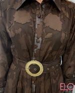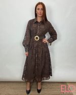 Vestido camisero largo de color marrón.