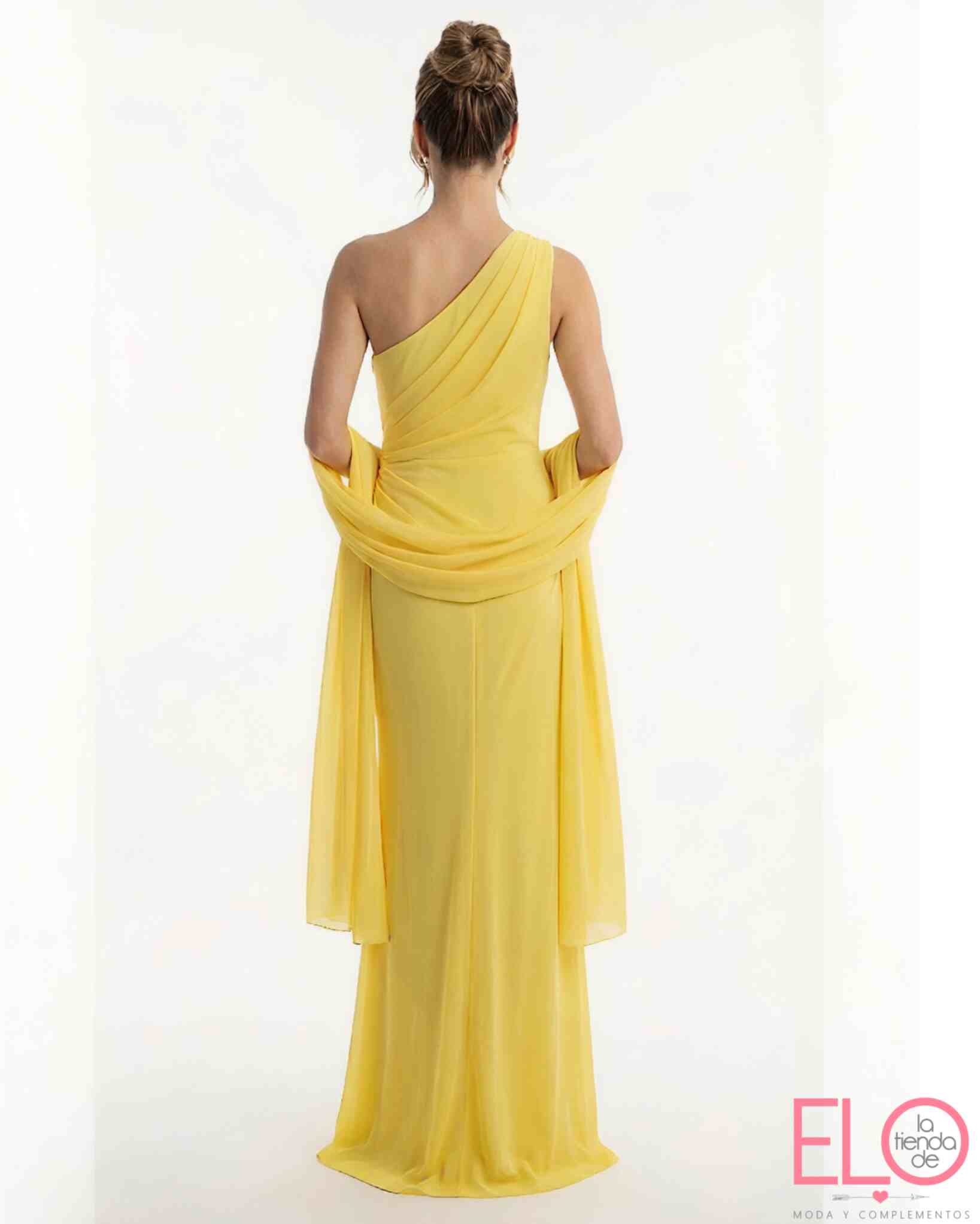 Vestido largo de color amarillo.
