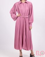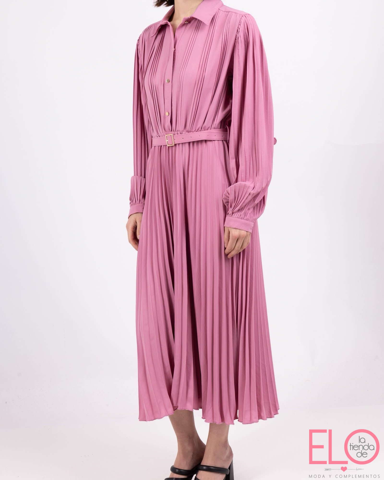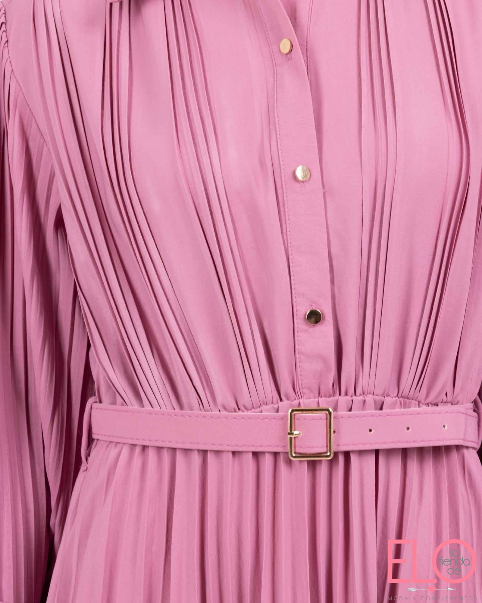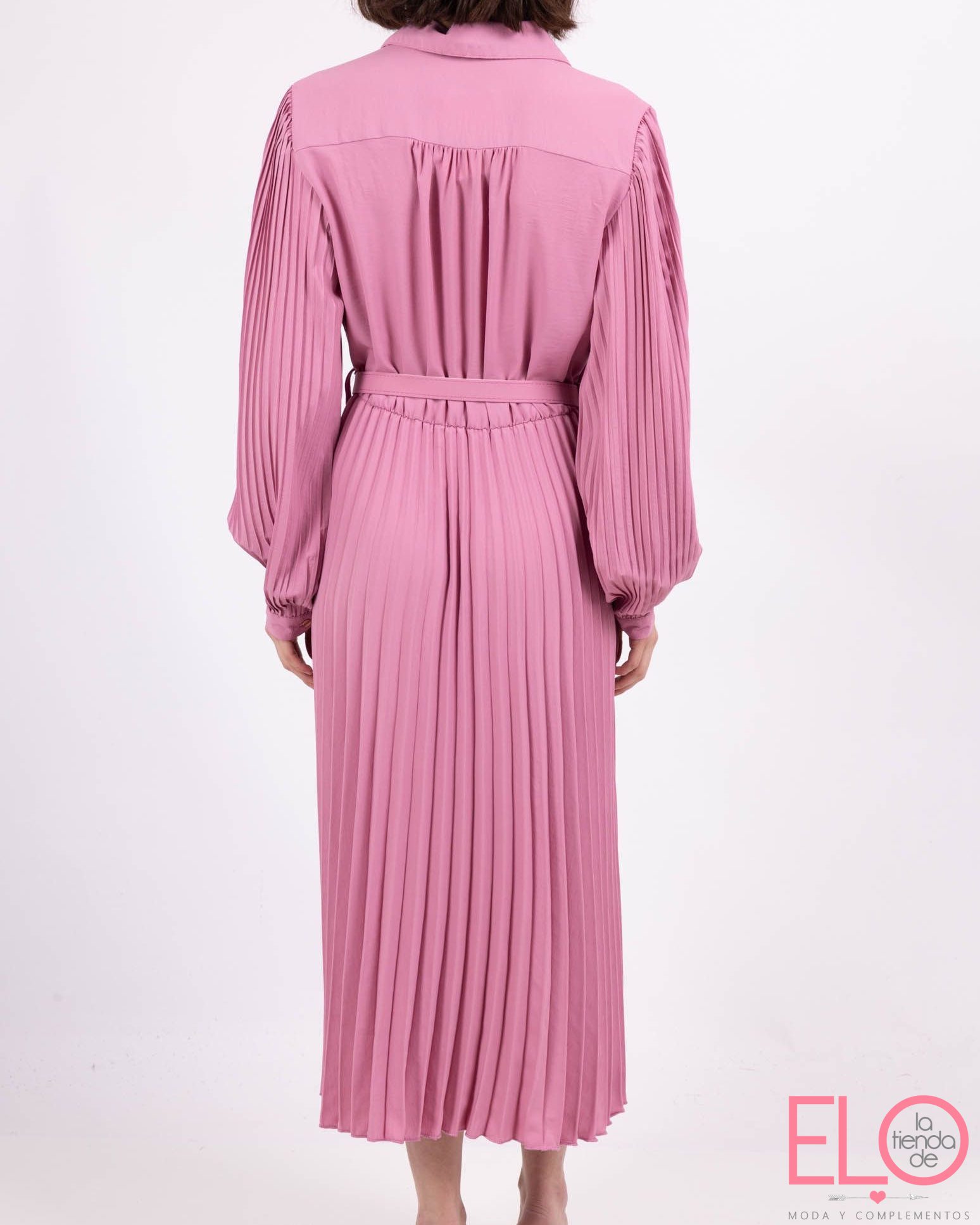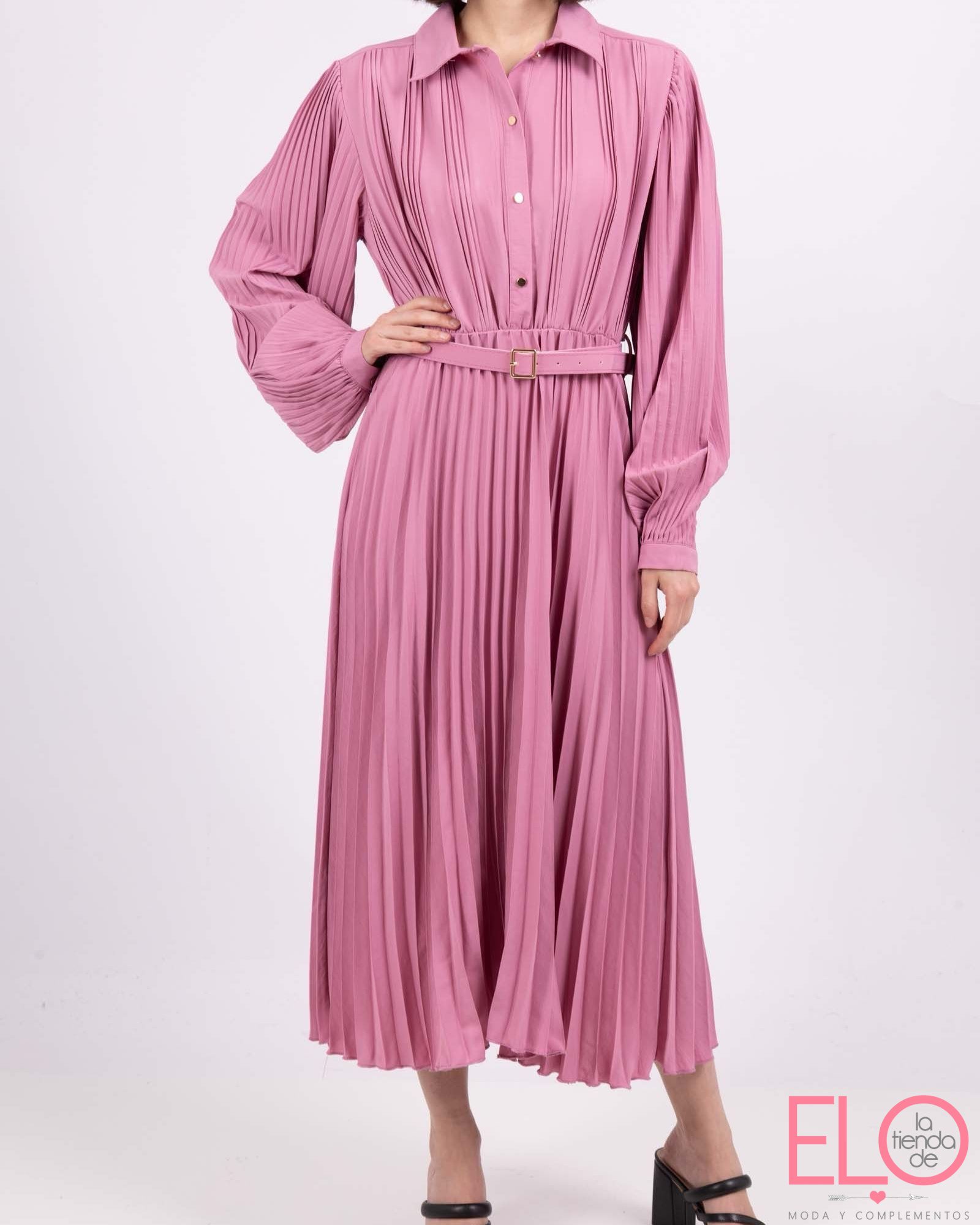 Vestido de tejido agradable tipo blusa, de manga larga pero perfecto para primavera, el tejido es plisado y el corte estilo camisero.