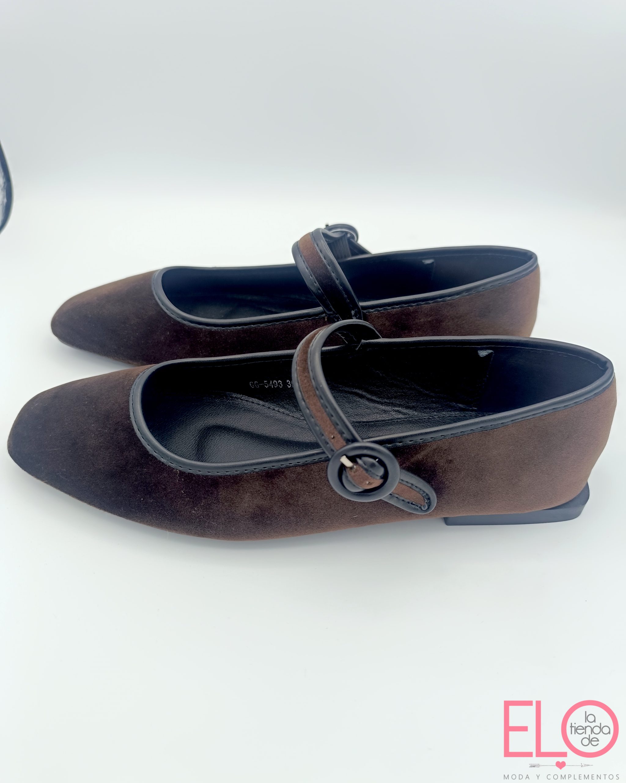 Zapatos tipo bailarina de color marrón.
